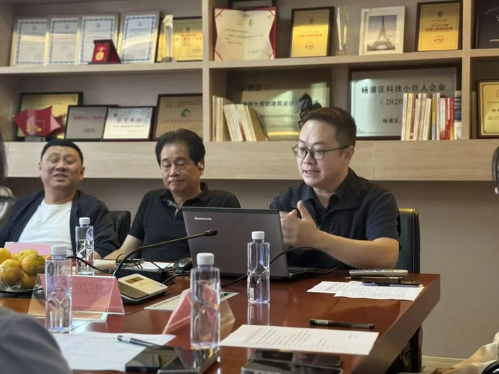 同大设计董事长金济萌、副总经理王建洲、总建筑师金立新、室内设计部负责人陈建伟等核心管理层热情接待了与会人员,并围绕行业协同与材料技术革新等核心议题展开了深入交流。